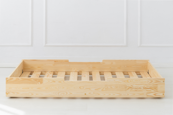Fabriqué en pin lamellé-collé classe 1, poncé et lisse sans nœuds, ce lit offre robustesse, qualité et sécurité. Le cadre de lattes est inclus.