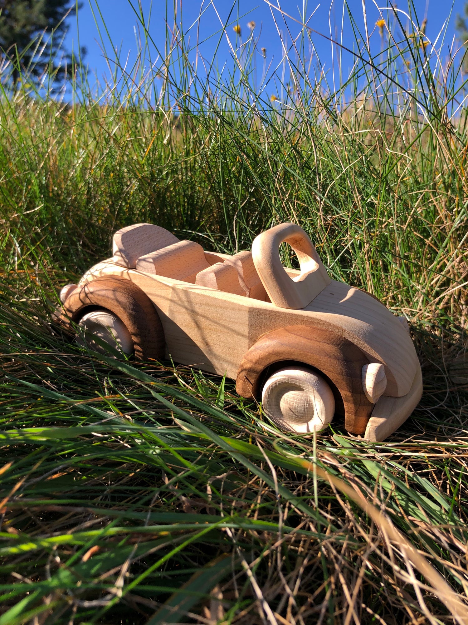 Voiture en bois Coccinelle décapotable – jouet vintage durable et écologique